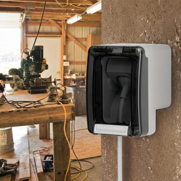 Gniazdo Scame Protecta Tilt z zamykanym wieczkiem w wersji bez puszki. Gniazdo zapewnia Klasa szczelności IP66 oznacza, że gniazdo jest pyłoszczelne oraz odporne na działanie wody lanej silną strugąklasę szczelności IP66. Pochylany wewnętrzny moduł gniazda umożliwia podłączenie wtyczki prostej lub kątowej, a po zamknięciu wieczka zacisk żelowy uszczelni miejsce wejścia przewodu do gniazda zapewniając bezpieczne użytkowanie nawet w trudnych warunkach (zapylenie, wilgoć, deszcz).